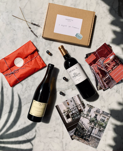Travel with your senses to France for an evening perfectly curated around two iconic wines: Bordeaux and Burgundy. Recipes, scents, music, wine, photography, music, art and cinema. What more could you need to create the perfect evening in homage to La Belle France? -2 x knockout French Wines - a fine Bordeaux red and a fine Burgundy white. -A little box of with 3 mystery aroma vials, of scents inspired by France. -A stack of postcards with beautiful photography of France. On the reverse of each you'll find everything you need to create a perfectly Frenchified evening through: -Recipe Pairing Ideas - Film Recommendation -A French Playlist (via Spotify) -Wine Notes